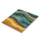 "Estepona" Horizontal Fractured Layers. In this captivating depiction, horizontal fractured layers of azure and sand are gently waving, evoking a sense of movement frozen in time, reminiscent of an acrylic pour.