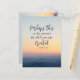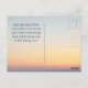 Postcard with inspirational quote scripture depicts a nature photograph with a beautiful blue and orange sunset over the mountains. It features Bible Verse Esther 4:14, "Perhaps this is the moment for which you have been created." The greeting, prayer can be personalized or deleted for a hand written message.