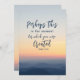 Flat greeting card with inspirational quote scripture depicts a nature photograph with a beautiful blue and orange sunset over the mountains. It features Bible Verse Esther 4:14, "Perhaps this is the moment for which you have been created." The greeting, prayer can be personalized or deleted for a hand written message.