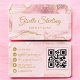 Promote your skincare services with this esthetician pink gold agate QR code business card. The soft pink tones paired with gold agate accents create a luxurious, calming look, while the integrated QR code allows clients to easily access booking links, social media, or service menus. Clean typography and a polished layout make this card ideal for estheticians, skincare specialists, and beauty professionals seeking a stylish, professional, and print-ready design.