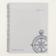 Cette collection de papeterie minimaliste fait partie de la collection The Midnight Cartographer et présente une boussole mécanique dessinée à la main rendue en lignes précises sur un fond de métal pewter froid.