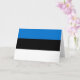 This design features the national flag of Estonia (officially the Republic of Estonia), which is a country on the eastern coast of the Baltic Sea in Northern Europe. It is bordered to the north by the Gulf of Finland across from Finland, to the west by the Baltic Sea across from Sweden, to the south by Latvia and to the east by Lake Peipus and Russia. The territory of Estonia consists of both the mainland and of 2,222 islands in the Baltic Sea. The official language of the country is Estonian. Tallinn is the capital of Estonia; other major cities in Estonia are Tartu, Narva, Pärnu, Kohtla-Järve and Viljandi.