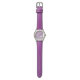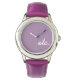 This simple, numberless watch features the abbreviation for "et cetera" (latin: and the rest) in white script text on a plain lavender background colour. It's stylish, artsy, fashionable, etc.