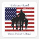 Beau drapeau patriotique américain avec une silhouette de soldat, bienvenue chez soi un nom personnalisé et des autocollants de date. Sticker design dispose d'un grand drapeau américain sur un arrière - plan blanc avec une silhouette devant les soldats, Les couleurs principales sont le rouge, le blanc, le bleu et le noir. L'autocollant dit, 'Bienvenue à la maison !' en haut et en bas est un modèle prêt pour vous à ajouter le titre et le nom de votre soldat militaire. Et enfin une zone sur le dessus pour ajouter votre date de retour à la maison, ou la date de fête. Remarque : si vous avez besoin de plus d'espace pour adapter votre titre/nom, cliquez sur "personnaliser" et vous pouvez réduire ou augmenter la taille de la police, changer de couleur ou sélectionner une nouvelle police. Cet autocollant est un grand ajout à toute collection d'autocollants et un merveilleux accessoire pour une fête militaire de retour, pour les faveurs de la fête. Il est disponible en différentes tailles et formes. Visitez notre magasin pour d'autres modèles patriotiques, retraite, cadeaux, chemises et cartes de voeux, dans différents styles, modèles et couleurs.