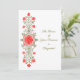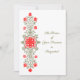 Une élégante invitation de mariage ou d'anniversaire avec des lettres de script et de serif et une gravure vintage avec un bouclier décoré et un design floral de marguerites et d'éléments de curling en rouge et en or, restauré à partir d'un manuscrit antique.