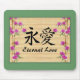 Asian "eternal love" on reed mat background with bamboo and pink orchid trim.