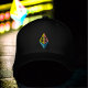 Custom blockchain Ethereum 2.0 rainbow diamond embroidery on both the front of the caap, as well as the back.