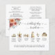 Elegant modern timeline program with watercolor images. Use of modern elegant hand written calligraphy details. Hand painted watercolor timeline images in golden tones and with coordinating watercolor floral details to bouquet on the corner. Flowers and foliage in blush, dusty rose, ivory, peach, cloudy slate blue, grey and sage tones. Floral details coordinating our "Ethereal" wedding and events collection. Ability to customize information on the back to suit your needs and even move around timeline images and text to a different order. Also available with back in slate dusty blue and in blush peach.
