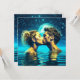 Personalized anime turquoise water waves with man and woman kissing in front of a full moon and stars. Valentine's Day card.