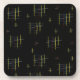 Le jaune, le bordeaux et le blanc, les gribouillis et les lignes d'un motif répétitif sur un arrière - plan noir, suggèrent un sens du mouvement et de l'énergie.