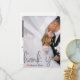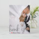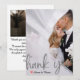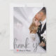 Express your gratitude with modern elegance. This design features a romantic faux vellum overlay effect and custom photo placement for a chic, minimalist finish.This design utilizes a sophisticated digital effect to simulate the look of translucent vellum paper. A semi-transparent white layer creates a "misty" or "frosted" background over your custom photography, allowing the image to show through softly. The typography features large, sweeping brush script in a printed silver-grey tone—simulating metallic ink without the shine. A small, hand-painted watercolor heart in deep red provides the only pop of colour against the monochromatic grey and white palette.This is a flat printed image with a {Faux Vellum and Printed Silver} effect. It does not contain actual translucent paper sheets, metallic foil, or raised textures.