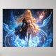 Ethereal Flame Frost girl with fire and ice wings Poster