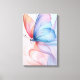 This breathtaking vertical artwork captures a single, majestic butterfly in a moment of tranquil flight. The wings are rendered in contrasting, yet harmonious, pastel tones of soft blue, coral pink, and peach, giving them a luminous, translucent quality. The butterfly is surrounded by flowing, silk-like plumes of color that blend into the dreamy background, creating an ethereal and weightless atmosphere. This piece is perfect for adding a touch of serene elegance, lightness, and modern feminine charm to any space
