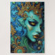 A captivating digital artwork featuring mystical female portrait in a blue and gold palette. Inspired by fantasy worlds and baroque aesthetics. Deep colours, graceful patterns, and a mystical style make this design a unique choice for fans of fantasy and surrealism