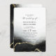 Ethereal Mist Ombre Black Watercolor Moody Wedding Design with hand painted watercolor misty wash fading background texture, gold foil look veining lines, and trails of confetti dots and edges. A trendy and Modern Look for any season, with soft dreamy colour palette : Black, Grey, White, and gold, with a chic popular brush Script lettering Font - Personalized Wedding Invitations!