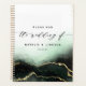 Ethereal Mist Ombre Emerald Green Watercolor Moody Wedding Design with hand painted watercolor misty wash fading background texture, gold foil look veining lines, and trails of confetti dots and edges. A trendy and Modern Look for any season, with soft dreamy colour palette : Black, Mint Green, White, and gold, with a chic popular brush Script lettering Font - Personalized Wedding Save the Date Weekly / Monthly Planner!