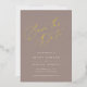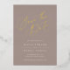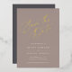 Elegant wedding save the date cards in earth toned cashmere greige feature "save the date" in luxe rose gold foil script lettering at the top. Personalize with your wedding details in classic soft white lettering.