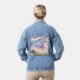 Ethereal Sky Castle Party Denim Jacket C'est une lune assez ethérée, château, nuages et sky Party Denim Jacket. L'image mystique a été créée avec de l'art génératif. L'art présente une grande lune, des nuages blancs et lavande et un joli ciel brillant bleu, lavande et argent avec un château et de l'herbe verte. La fête est au centre de l'arrière de la veste en écriture violette. Vous pouvez modifier l'image et le script en cliquant sur le bouton Personnaliser. Vous pouvez payer pour la veste denim en 4 paiements sans intérêt avec Klarna.