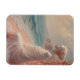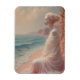 mesmerizing fantasy artwork featuring an ethereal woman draped in flowing fabric, sitting peacefully on a soft pink beach with gentle waves and floating fish in the air. Surrounded by blooming flowers and pastel tones, this surreal coastal scene radiates serenity and wonder. Perfect for lovers of fantasy, romantic dreamscapes, and soft surreal art—ideal for prints, wall decor, and elegant accessories.