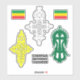 This is a sticker set of three Ethiopian Orthodox Tewhado crosses with two flags. የመስቀል ዓይነቶች በኢትዮጵያ ኦርቶዶክስ ተዋሕዶ ቤተ ክርስቲያን Please note: don't put these crosses below feet or in any surface that is disrespectful.