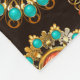 Seamless pattern of gold and brass, ethnic brooches decorated with carnelian, turquoise and jasper on brown background. Ethnic jewellery.