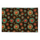 Seamless pattern of gold and brass, ethnic brooches decorated with carnelian, turquoise and jasper on brown background. Ethnic jewellery.