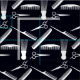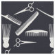 Black and white pattern classic barbershop, hair salon diverse set of hair combs, scissor pattern. Natural hair care tools.