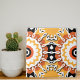 Ethnic Orange Black & White Damask Mosaic Pattern Tile