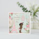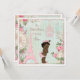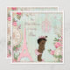 Vintage ethnic Paris Princess shabby chic baby 1st Birthday party celebration invites template for African American girls. Our Little Princess is turning One. On the front of these elegant, feminine, classy, whimsical, French Parisian Princess themed First birthday party invitations is a pretty vintage art illustration of a cute and adorable ethnic baby girl with stylish Princess crown, pink diaper with ruffles, and whimsical bunny rabbit slippers. The background is a beautiful, stylish, colourful, girly antique altered art collage with blue and white stripes, and a faded damask pattern with a pretty, rustic, summer country garden border of pink roses flowers, ferns, dragonflies, green leaves, clocks, birds, and images of white lace, a pink Paris Eiffel Tower and fancy, ornate, pastel pink chandeliers. These cute, fun, colourful, fashionable, trendy, floral, original and unique, glamourous Paris princess theme invitation templates are decorated on both sides / have double sided printing / printed on front and back. These gorgeous, romantic, sophisticated, contemporary, invites are a modern design with an old fashioned look. Perfect for spring and summer home or garden parties for baby girls who are one year old. All of the text is fully customizable to meet your needs and you can change the font style, colour and size of font if you desire. If you need any assistance customizing your product please contact me through my store and I will be happy to help.