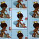 Cute ethnic vintage prince blue fabric. A beautiful vintage illustration of a cute and adorable African American baby boy with stylish blue diaper and a gold crown. He is talking on an old red retro telephone. He is holding a little blue suitcase and his quirky teddy bear is leaning against it. The background is a pretty blue colour. Perfect for to make curtains with for your new baby's nursery. If you need any assistance customizing your product please contact me through my store and I will be happy to help. I have matching products in my store.
