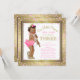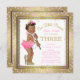 Ethnic princess girls 3rd birthday party invitation with pink and gold glitter and sweet ethnic African American princess girl wearing gold high heel shoes and pearls on a pretty pink and gold glitter confetti and diamonds background. You can easily customize this adorable ethnic princess birthday party invitation by simply adding your details in the font style and colour, and wording of your choice. You can also change the background colour and the year. This is a printed design with no real glitter, confetti, diamonds, etc.