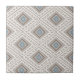 Boho tranquil patterned ceramic tile.Calming neutral color pallet of pebble, teal, warm brown and egret white in a tile pattern print style.Rustic style ethnic pattern print home decor and soft furnishings.