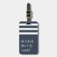 Flancez votre statut de voyageur fréquent avec ces étiquettes de bagages mignonnes et drôles. Le design présente la citation "Ai-je l'air d'un entraîneur de vol ?" en lettres blanches sur un arrière - plan rayé. Personnalisez le dos avec vos coordonnées.