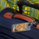 Un bobcat jaune doré avec une étiquette de bagage/sac à expression. Vous pouvez personnaliser/adapter les deux côtés de cette étiquette pour vous-même ou votre animal de compagnie, vous pouvez même ajouter la photo de votre animal à cette étiquette.