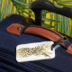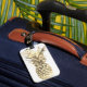 Voyagez dans le style avec cette étiquette de bagage d'inspiration tropicale. Ce design présente un ananas en or pâle sur un arrière - plan blanc. Conçu par l'artiste ©Susan Coffey.