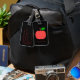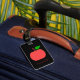 Belle pomme rouge sur l'avant. Étiquette sur le dos. Ajoutez votre nom, adresse et numéro de téléphone.
