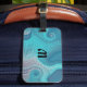 Étiquette À Bagage Aqua et Taupe Tourbillons océaniques avec initial