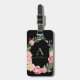 Étiquette À Bagage Aquarelle Boho Floral sur noir | Monogramme chic
