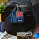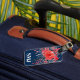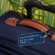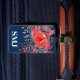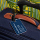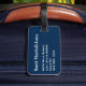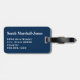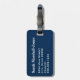 Marque de bagage avec denim bleu floral aquarelle et fleurs de rose rouge, initiale(s) monogramme/nom, et l'adresse d'un arrière - plan bleu marine. Personnalisez avec vos initiales monogrammes/nom, nom et adresse en utilisant les modèles faciles. La couleur de police, le style de police, la taille de police et la couleur arrière - plan bleu marine sont personnalisables. Parfait pour tout sac de voyage.