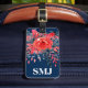 Étiquette À Bagage Aquarelle Monogramme Floral Bleu Denim / Rose Roug