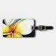 L'étiquette parfaite de bagage pour l'amant de plage ou le voyageur d'été avec la conception originale d'art de la peinture pour aquarelle par Sacha Grossel de jaune tropical et de blanc avec le vert de chaux accentue des fleurs de frangipani au foyer étroit, macro style. Cette conception botanique lumineuse, colorée, florale est réminiscente de l'été, de la culture de surf, du temps chaud et d'être près de la plage.