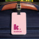 Balise de bagage avec votre initiale monogramme dans une grande police en gras et votre nom ci-dessous. Texte bourguignon sur un arrière - plan rose. Les couleurs sont personnalisables dans l'outil de conception. Ajoutez vos coordonnées au verso.