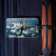 Super photo d'un avion de chasse dans le ciel. Grande capture avec de beaux nuages et des îles visibles sur le sol.