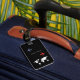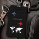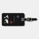 Carte blanche du monde avec deux avions sur une étiquette-valise noire, pour personnaliser avec votre nom et numéro de téléphone ou adresse... Une façon intelligente de faire ressortir vos bagages dans la foule... parce que tout le monde semble voyager avec une valise noire