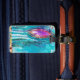 Voyagez dans le style et trouvez votre sac rapidement avec cette étiquette de bagage artistique colorée. Conception de média mixte originale.
