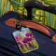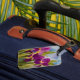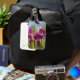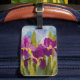 Des iris violets peints contre un arrière - plan bleu aquarelle en font un joli bagage...instruction parfaite, facile à identifier.