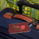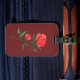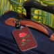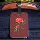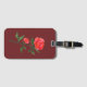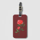 une aquarelle décorative d'une rose rouge sur une étiquette à bagages rouges
