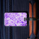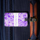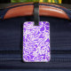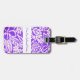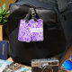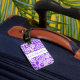 Marque de bagage personnalisée affichée avec un joli imprimé hawaïen de couleur violet avec du texte. Customisez cette étiquette ou achetez tel quel.