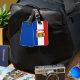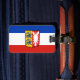 Balise de bagage avec drapeau de variante du Schleswig-Holstein; conception avec tricolore horizontal de rouge, blanc et bleu, et avec armoiries de l’état au centre