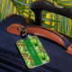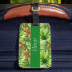 Balise de bagage tropical monogrammé vert et orange. Personnalisez avec votre nom.